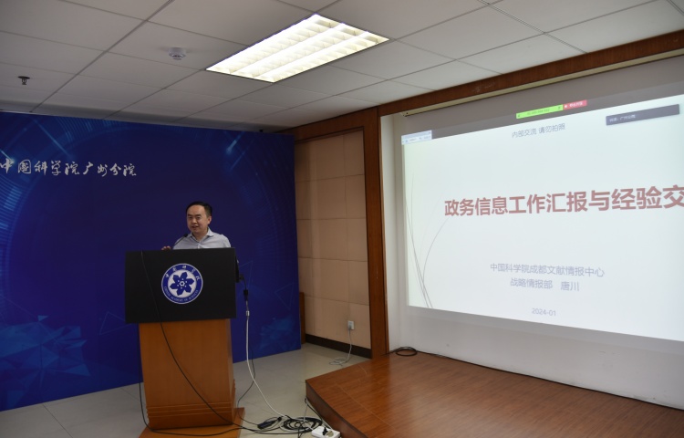 成都文献情报中心科技处副处长张邓锁和战略情报部副部长、研究馆员唐川分别作《政务信息工作概况》和《政务信息工作汇报与经验交流》专题报告,介绍了成都文献情报中心在政务信息工作方面,服务国家和地方高水平科技智库建设的经验。