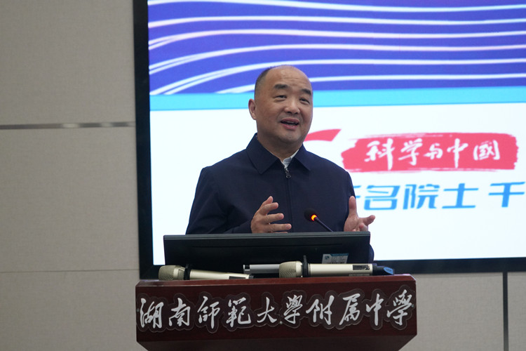 2023年10月30日,“科学与中国—千名院士 千场科普”湖南系列科普活动在长沙拉开帷幕。中国科学院院士王怀民受邀走进湖南师范大学附属中学,作题为“科技创新的源泉”的科普讲座。讲座同步进行网络直播,现场和网络听众总人数超44万人次。